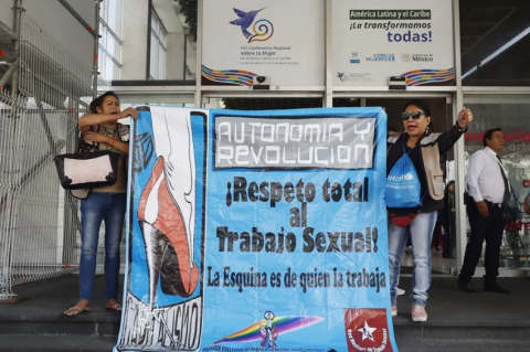 Trabajadoras sexuales de México protestan afuera de la Conferencia Regional sobre la Mujer